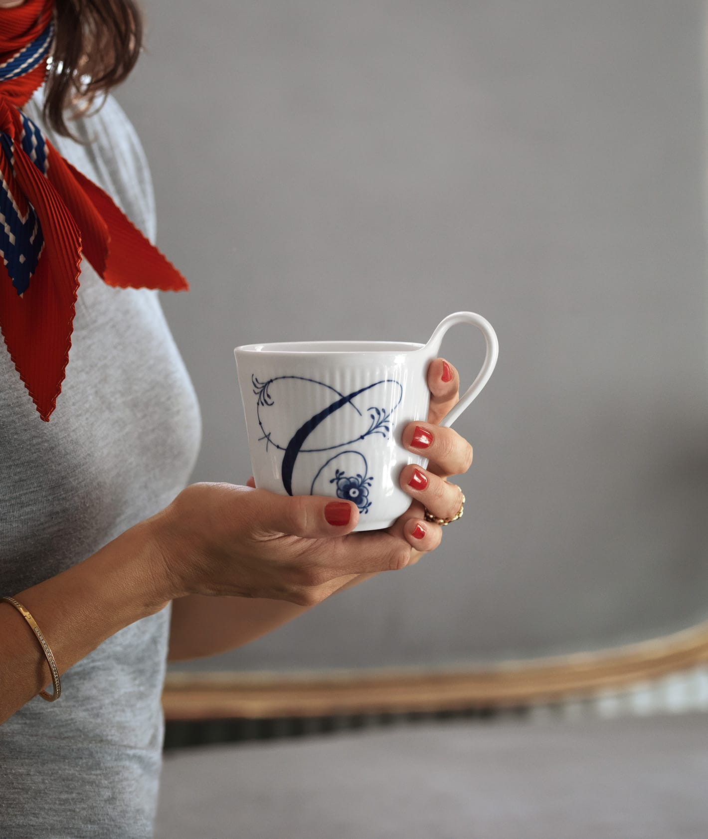 Royal Copenhagen Alfabetkrus gir en klassisk, blåmalt form et preg av personlighet. Alfabetkrusene ble til i 2014, og er inspirert av Royal Copenhagens første servise: Musselmalt Riflet fra 1775. Den elegante formen er hentet fra den klassiske formen på høyhankskoppen fra 1884. Alfabetkrusene er dekorert med en håndmalt bokstav og to palmetter, som minner om andre klassiske design fra Royal Copenhagen.