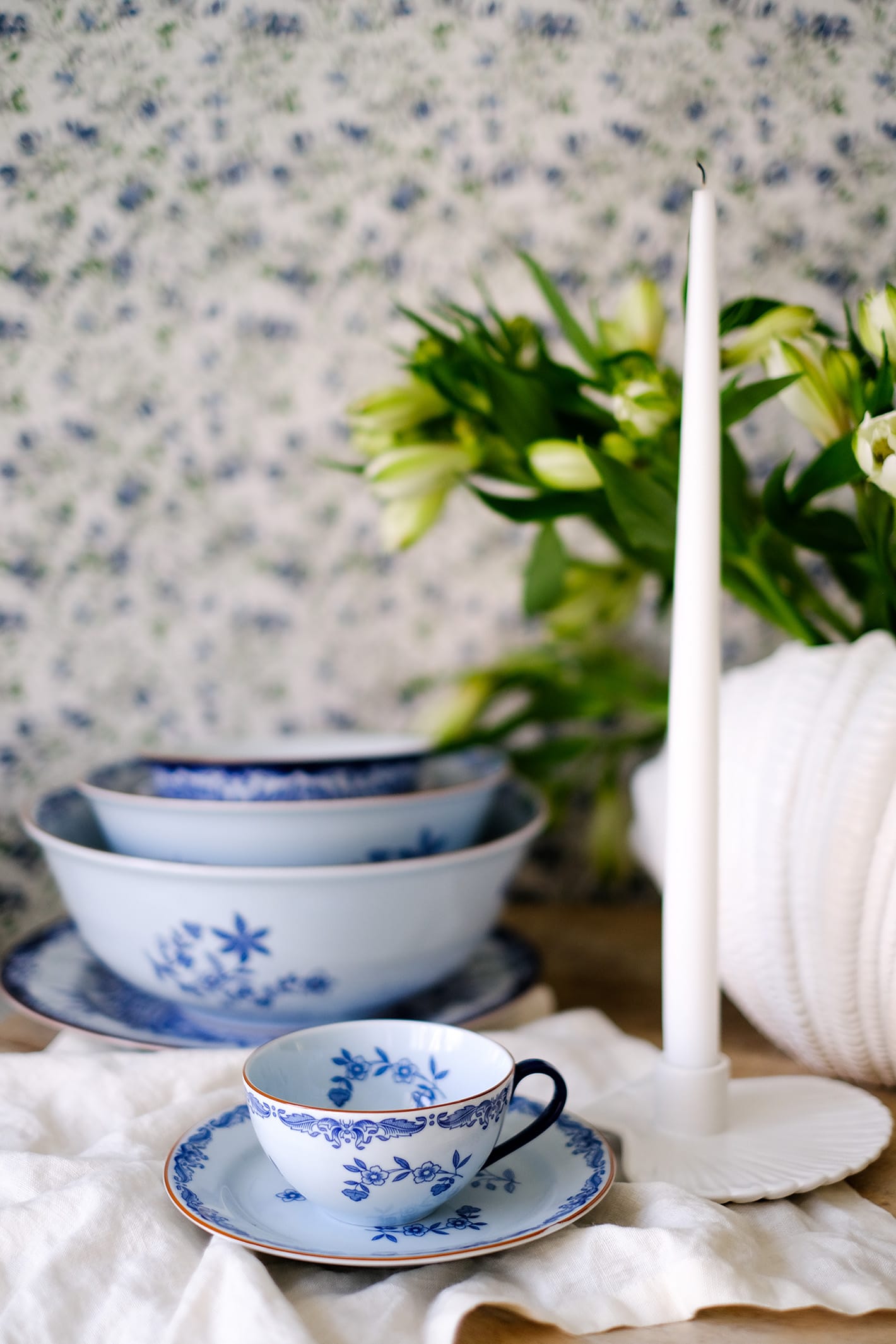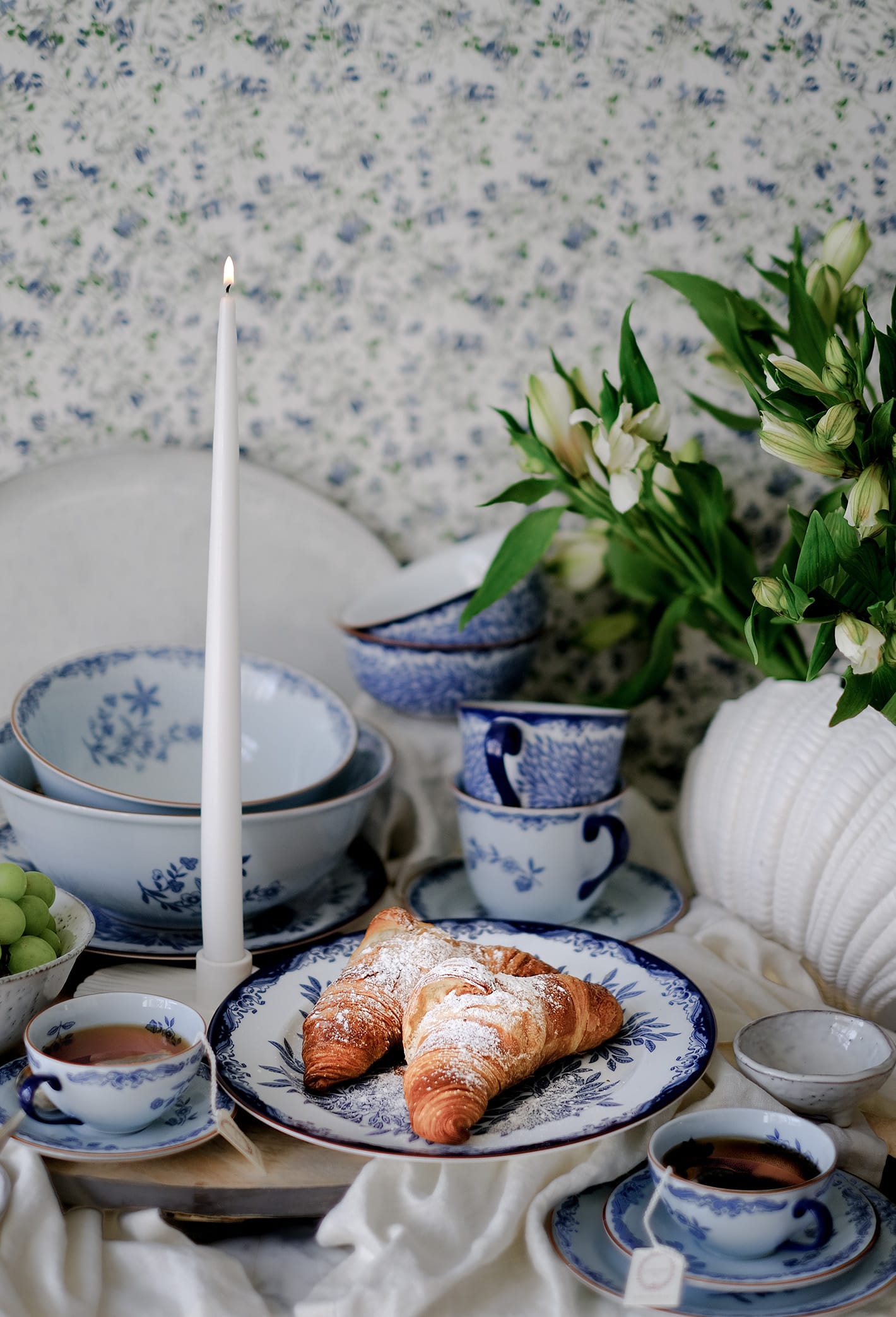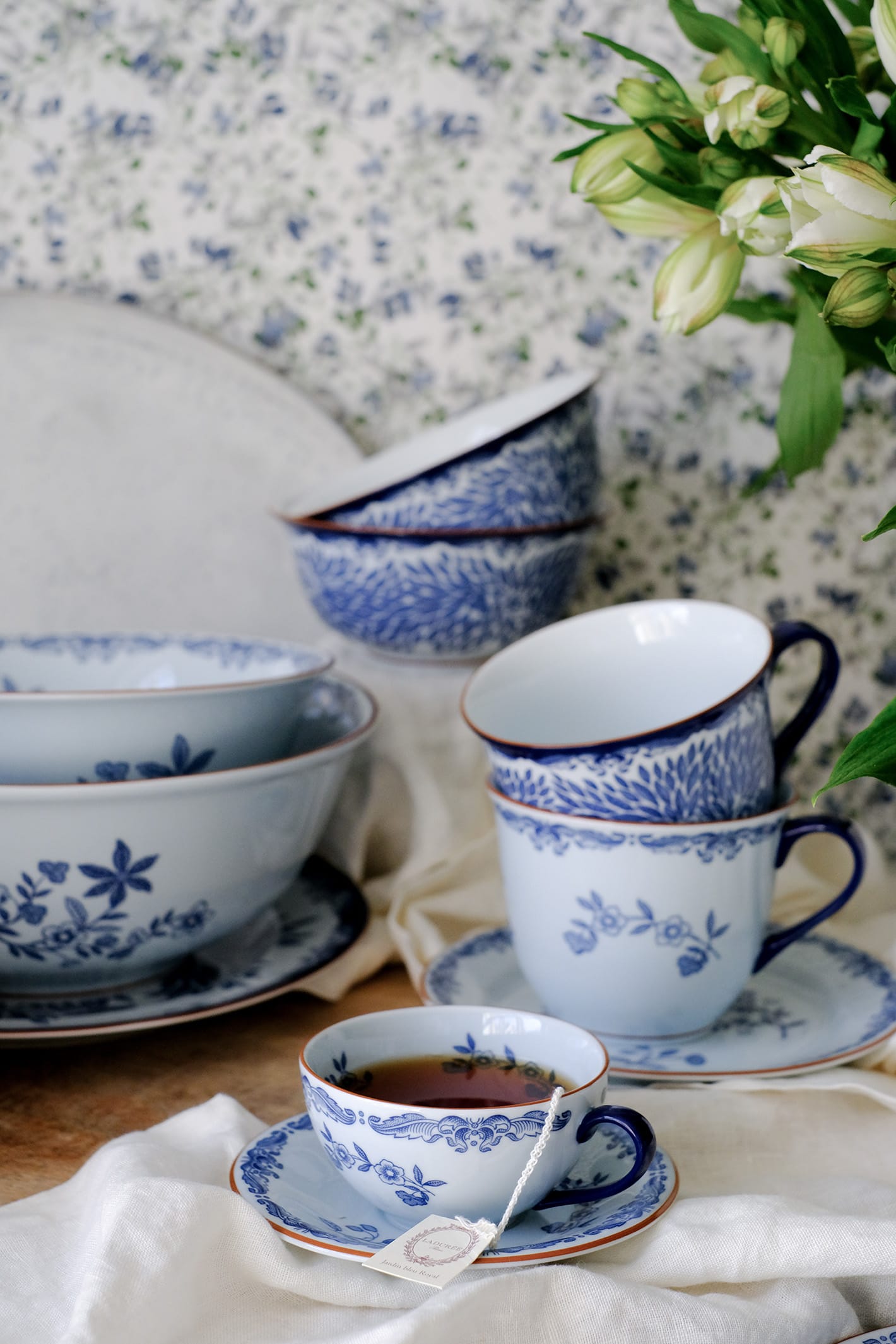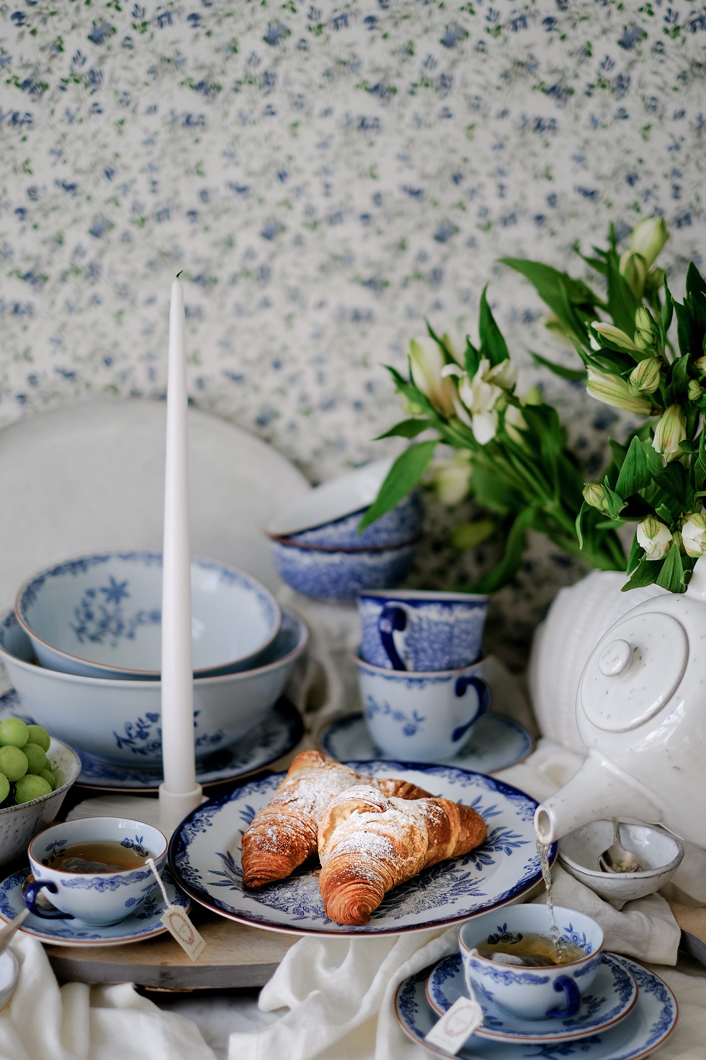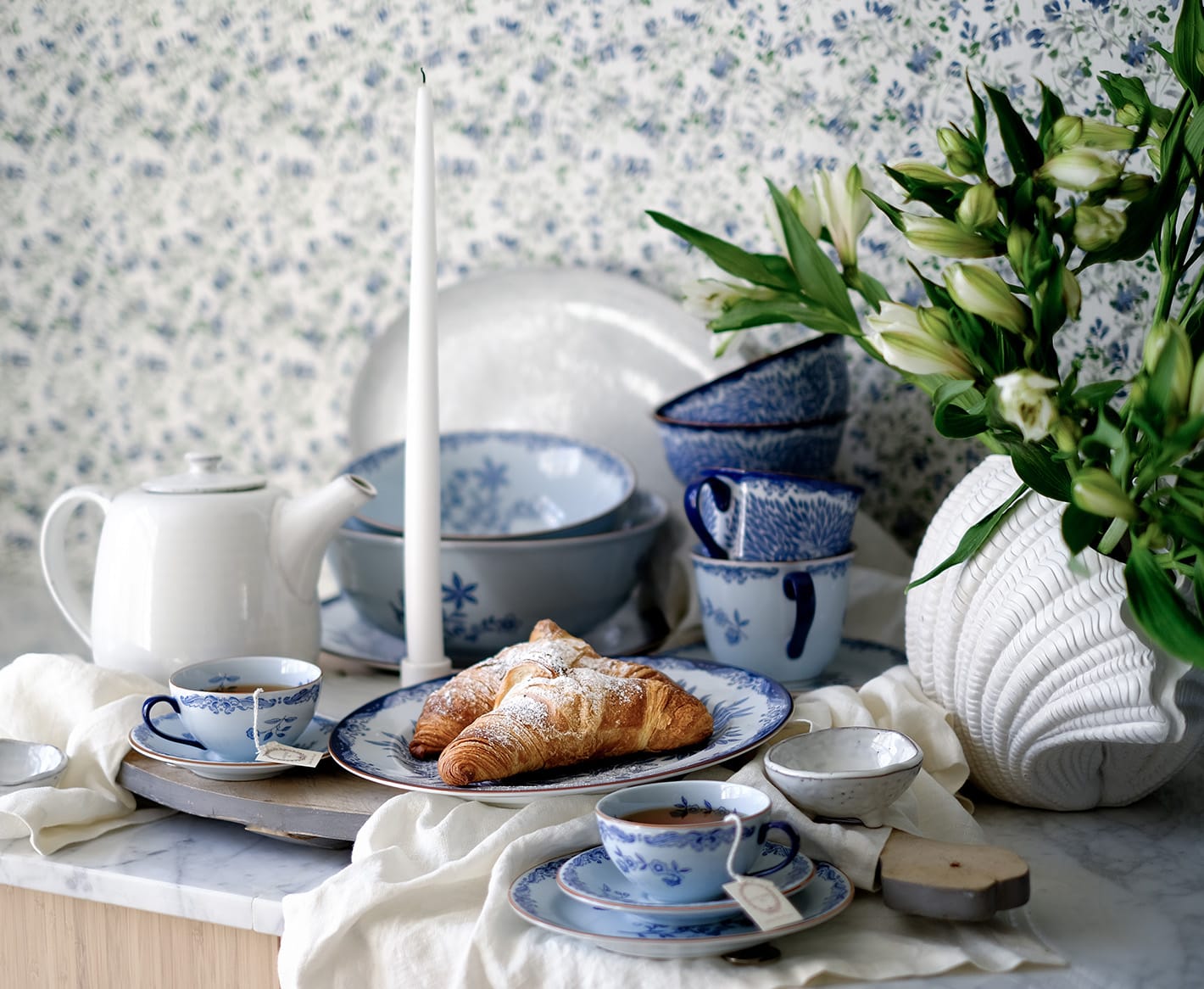 Noen dager spiser vi ute under åpen himmel – andre dager er det mer fristende å hente naturen inn. Pynt bordet med friske blomster og linservietter, og fyll koppene med duftende teblader.