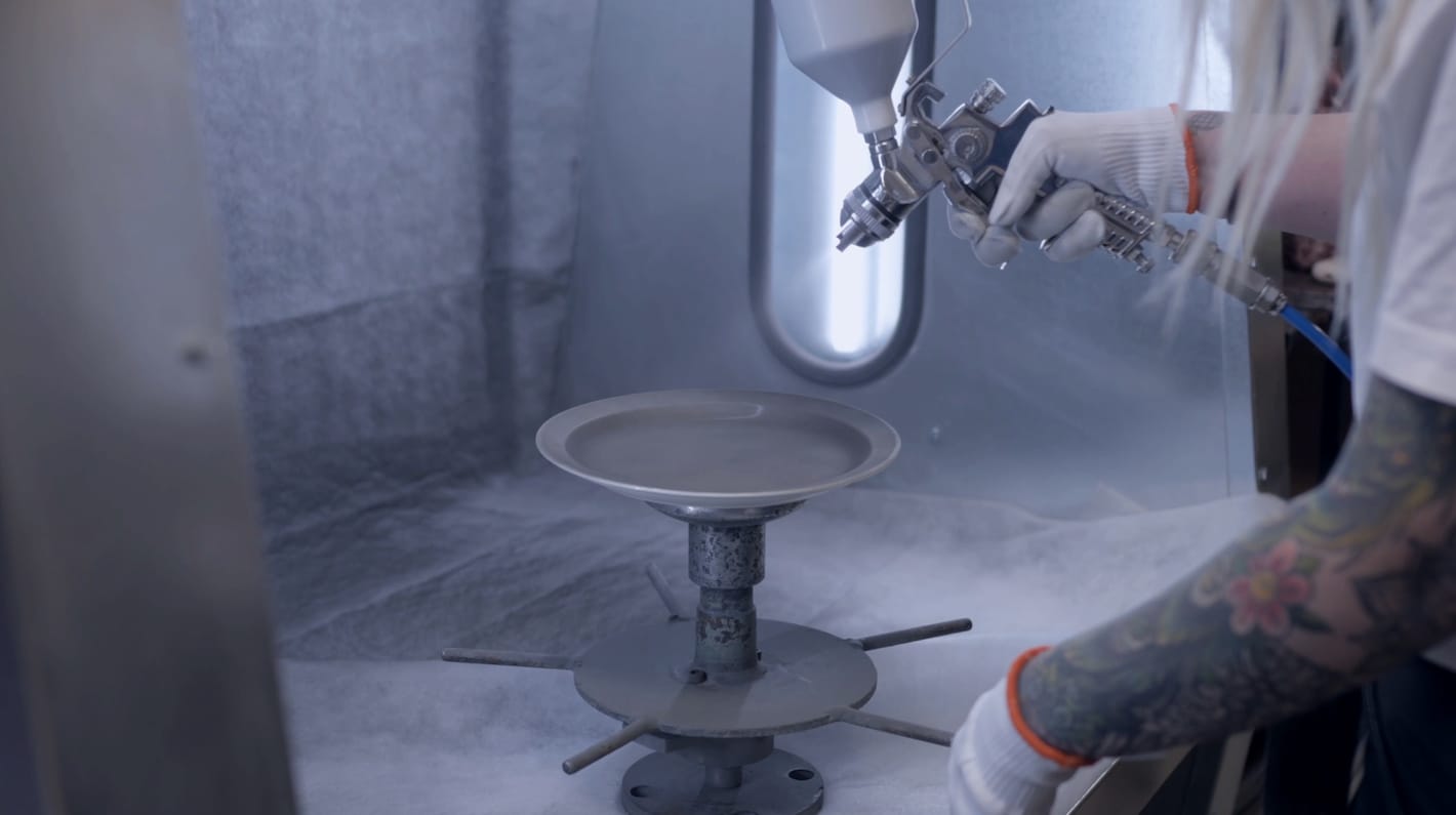 Gjennom nøyaktig håndverk blir hvert produkt satt på en dreieskive, rotert rundt for hånd, samtidig som fargen påføres. Et slikt arbeid krever presisjon, tålmodighet og et godt øye for detaljene. Etter fargene er påført blir porselenet brent på ny, slik at fargen setter seg i materialet. Først når produktet kommer ut av ovnen vil en se de flotte nyansene som oppstår med ekte håndverk.