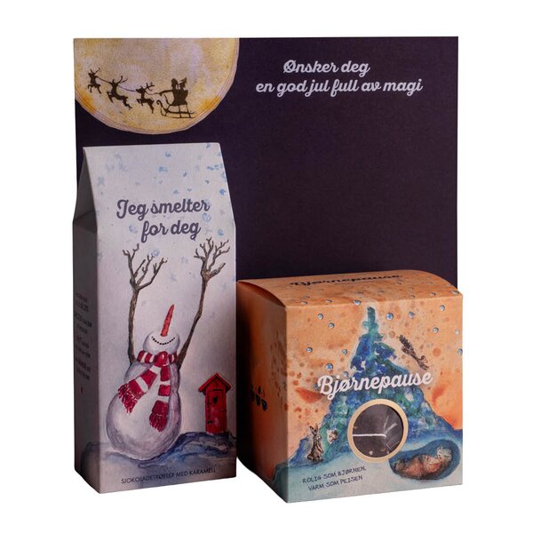 Det hele er pakket inn i et vakkert design signert Bjørg Thorhallsdottir, kjent for sine hjertevarme og ærlige uttrykk. En gave som formidler omtanke, og som passer like godt i en adventskalender som til en god venn – eller til deg selv, når du trenger et lite pusterom med ekstra mening.
